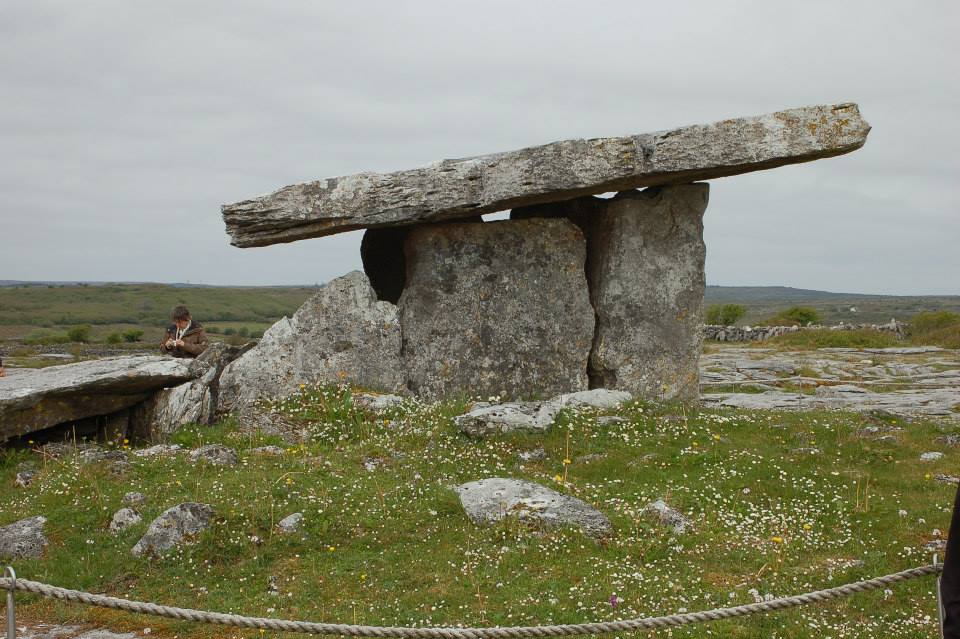 Our destination: Poulnabrone dolmen. (Here comes more Wikipedia knowledge) The Poulnabrone dolmen is tomb dating back to the Neolithic period, probably between 4200 BCE and 2900 BCE. When it was discovered, excavation efforts found between 16 and 22 adults and six children were buried under the monument along with such personal items as polished stone axe, a bone pendant, quartz crystals, weapons and pottery.