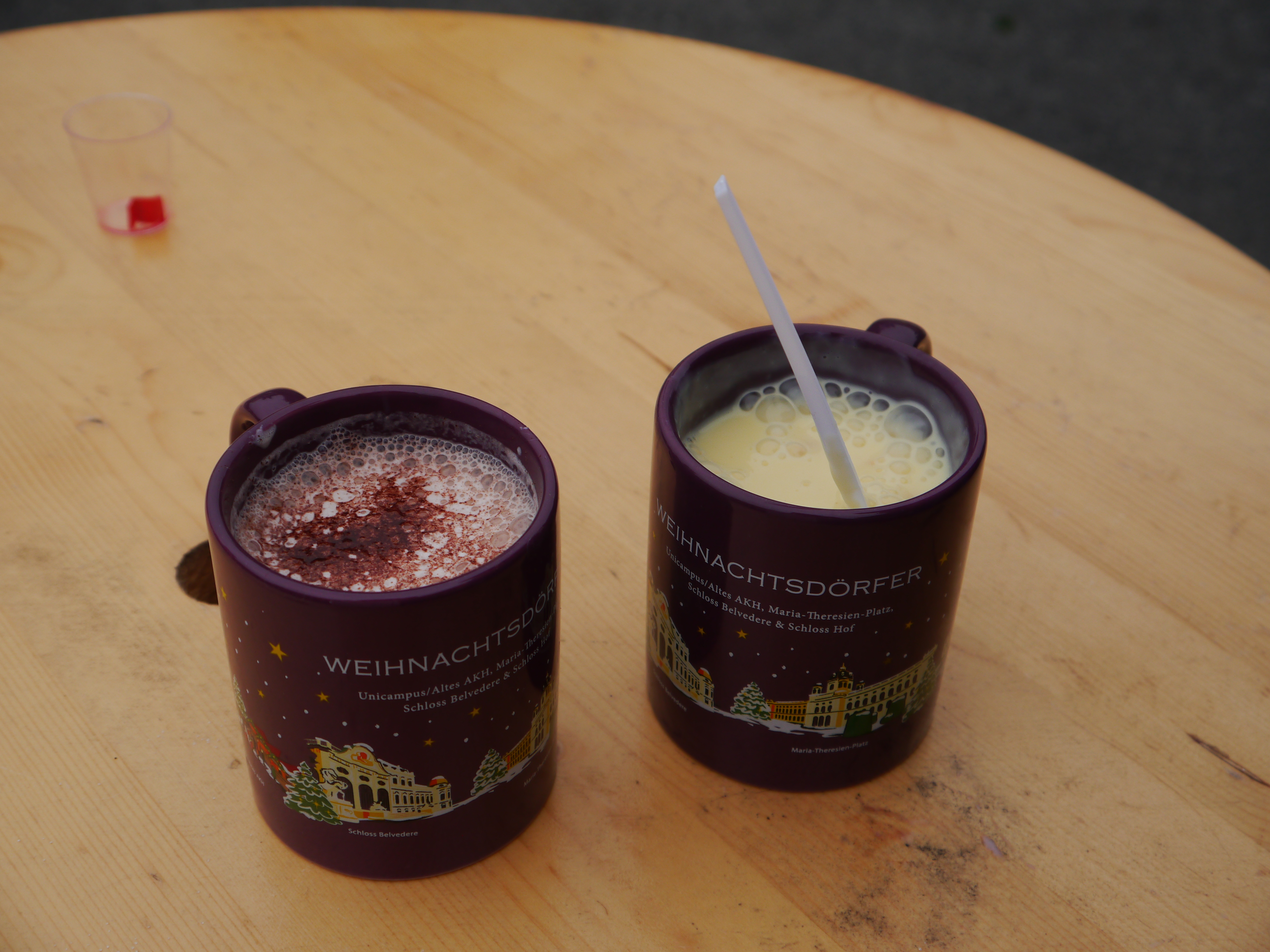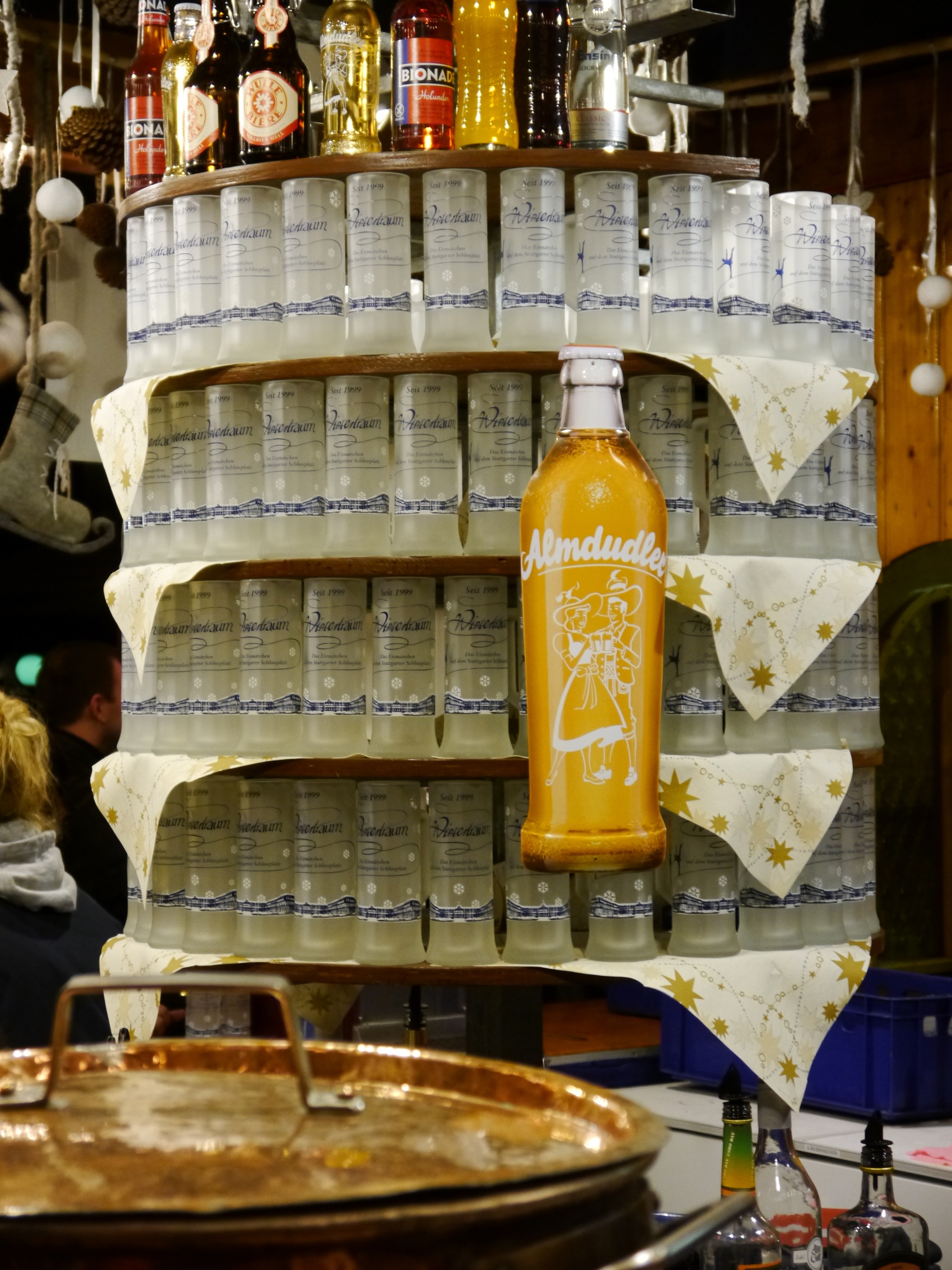 One of the staples of the Christmas markets is Gluhwein (warm red or white wine), but there is also a choice of “Punsch” (alcohol or alcohol frei) and hot chocolate – all of which is served in coffee-like mugs that are customized to the Christmas market that serves them. So far, I have 12. I figure they will make cute candle holders each Christmas. There is the option of turning them back in (you pay a “pfand” or deposit on each cup that you can get back – but seriously, the mug is totally worth the 2E pfand!)