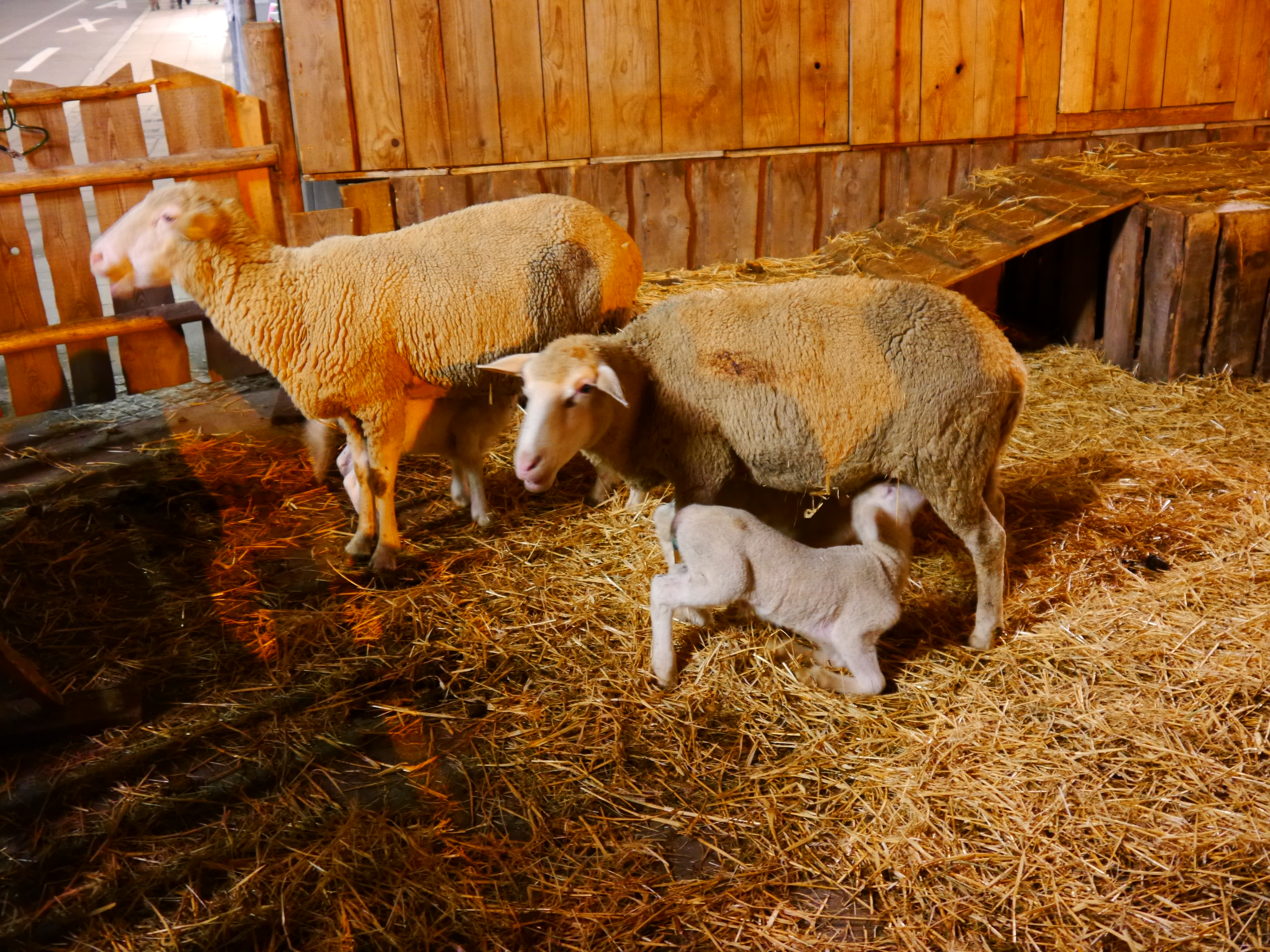 In Stuttgart, there is a contest for designing the best roof decoration – and just when you thought you saw it all, you walk around a corner and there is a barn-like set up with donkeys and a family of lambs and baby lambs. You never know what you are going to find – and it is absolutely awesome.