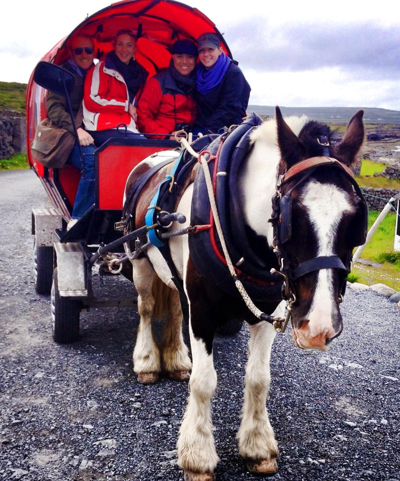 Once we had gotten to the island, we made plans to take a Trap and Pony tour – yes, a carriage ride pulled by a cute horse! Now, there are companies on the island that offer the same ride, but we opted to go with Trap and Pony by John (https://www.facebook.com/InisMorPonyAndTrapToursWithJohn) He was a one-man show that knows the island like the back of his hand – probably because he was born and raised on the island (literally – we saw the house where he was born and raised, it was right next door to the house he lives in now.) If you visit the Aran Islands, don’t hesitate to book a trip with John. He was so concerned about the fact that we wouldn’t have time to see the island that he called our hotel a couple of times to tell us to catch the earlier ferry. Sadly, we never received those messages, but he was right. We had to pick and choose what we saw – we missed Dun Aengus (the #1 tourist attraction on Inishmore – Trap and Pony with John is #2!), but we figured because we had seen the Cliffs of Moher, we had a pretty good idea of what we would see at Dun Aengus. Instead, we enjoyed the sites around the island – the pretty landscape, the shore where seals sun themselves and we left plenty of time to shop! We had been saving our Irish wool buying until we got to the Island, so we were not missing out on our chance to pick up some of the warm goods! (And in Germany – those wool socks and wool scarf have come in handy!!)