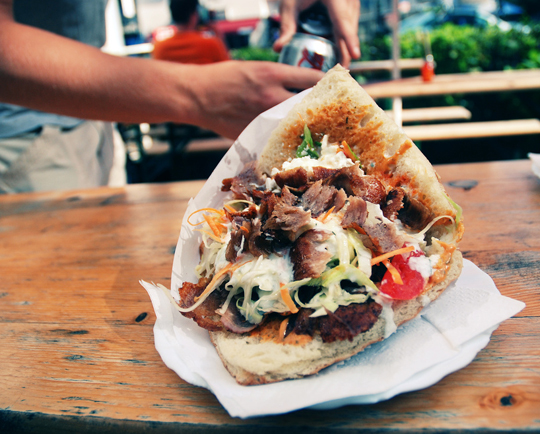 3. Donor/Youfka (prounounced Doe-ner/You-f-cah) – Depending on whether the owner is Greek or Turkish, the name changes but the dish is basically the same. I don’t eat these because the big slab of meat scares me a bit – but this is Germany’s version of fast food and everyone who eats them seems to really enjoy them.