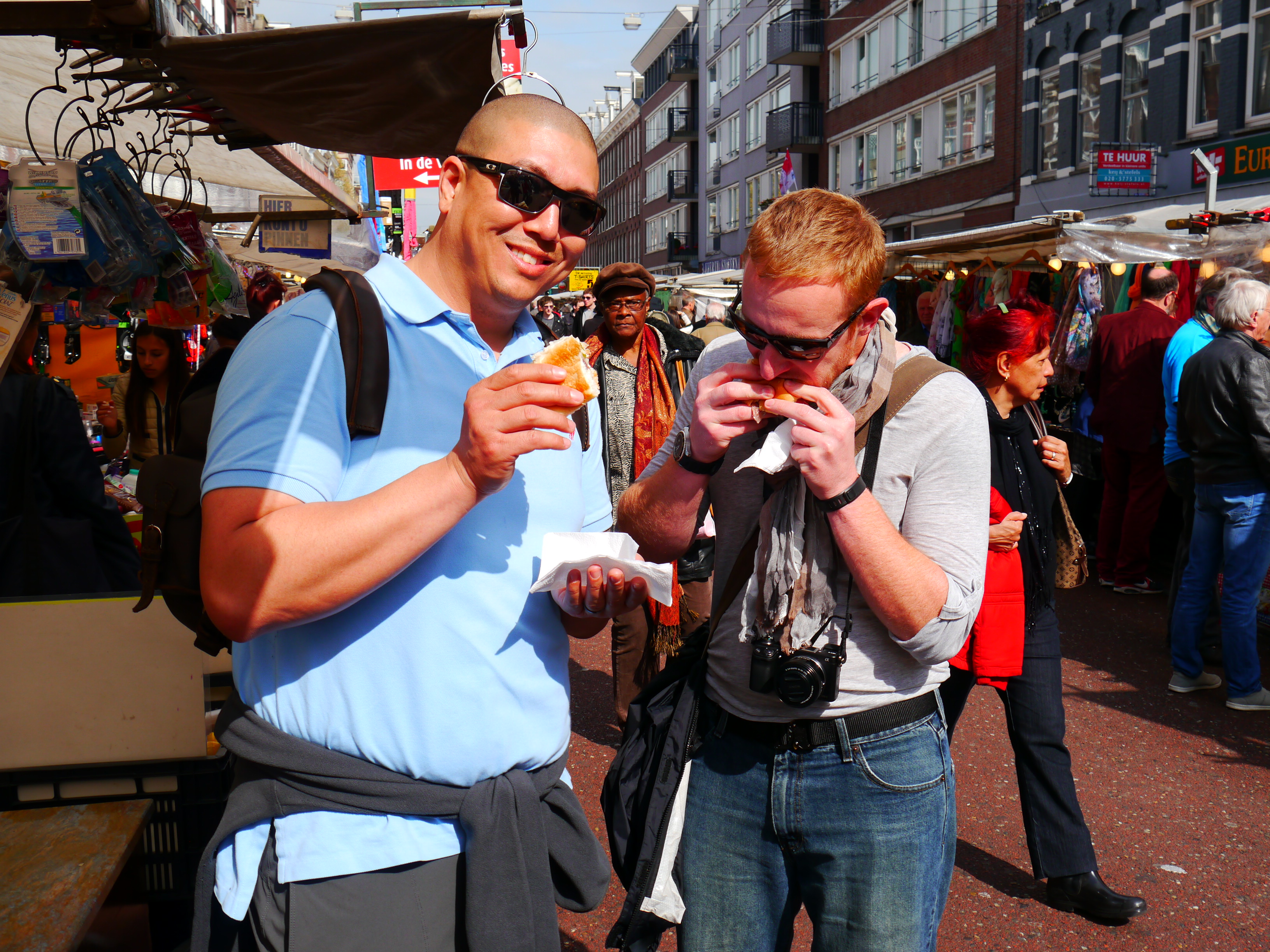 The afternoon was pretty wide open – perfect for exploring the markets around Amsterdam. However! Regardless of what your guidebook says, SKIP the Albert Cuypmarkt. Both Renee and I had it as a recommended market, and neither of us were sure why! It is one giant flea market, and not even a good one! The only highlight of that was watching John and Jake try to choke down the herring that Amsterdam is known for (FYI – both of them looked a little green after!)