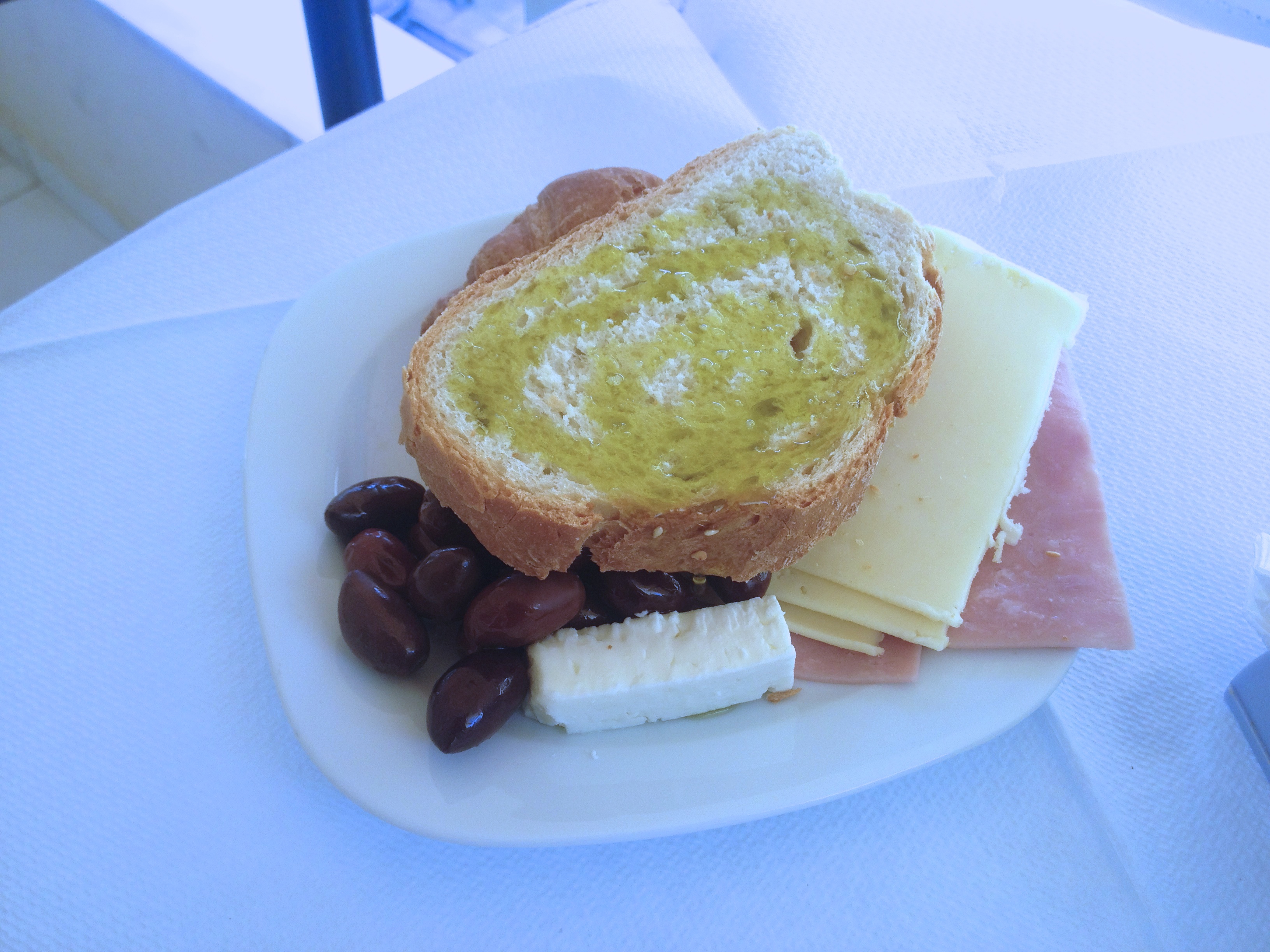 What else would you expect from a Greek hotel, but to serve bread and olive oil, with feta and olives for breakfast?
