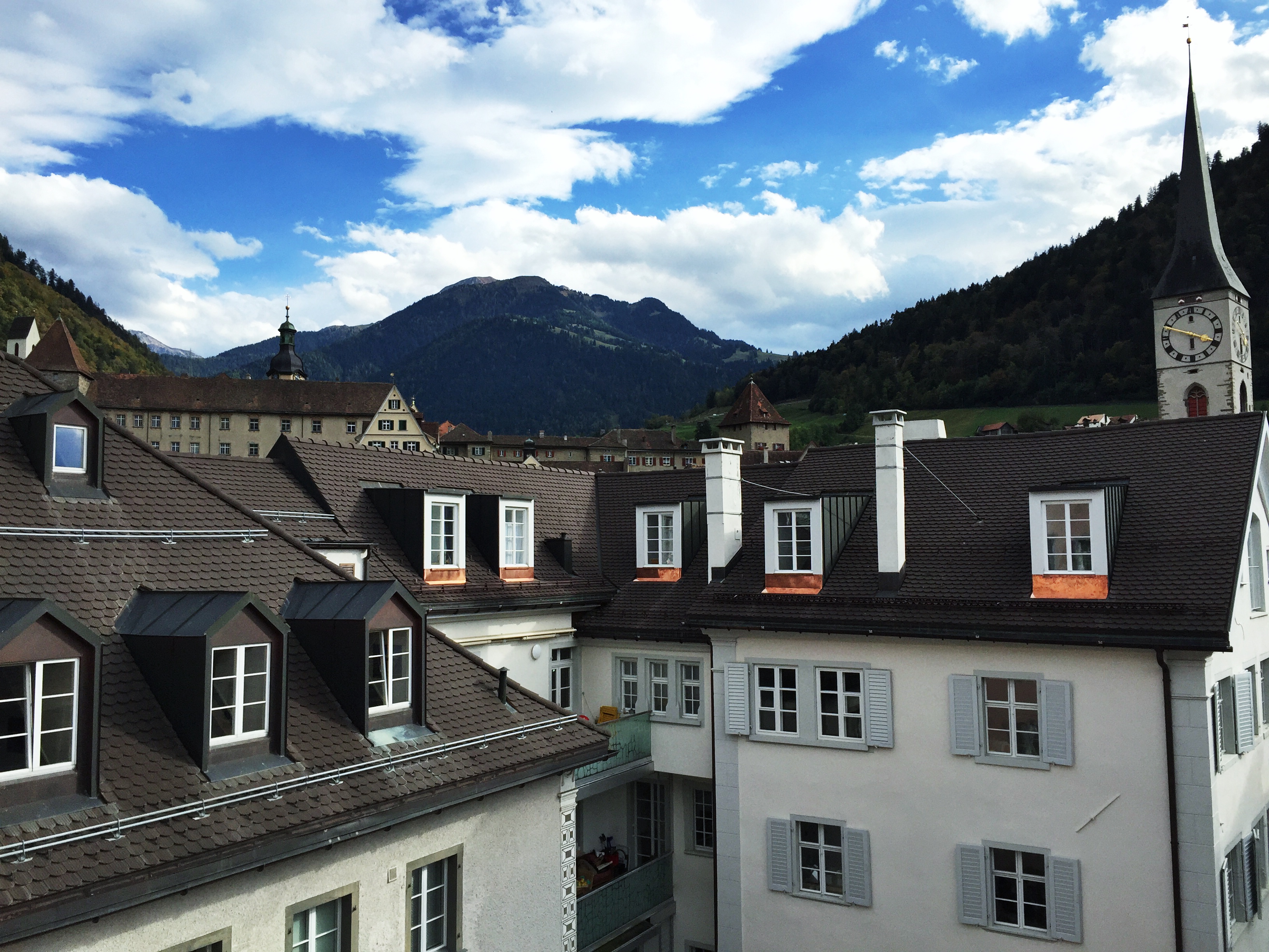 We stayed in Chur (pronounced like Cure), a cute little town with a cobble-stone innerstadt (inner city). We stayed at a great little hotel, the Ambiente Hotel Freieck and spent the first night exploring and sitting outside at cute cafe.
