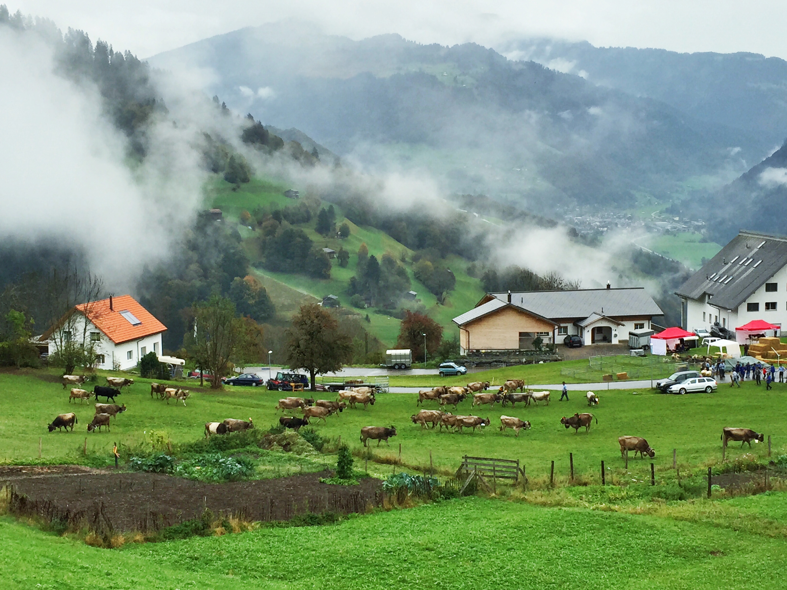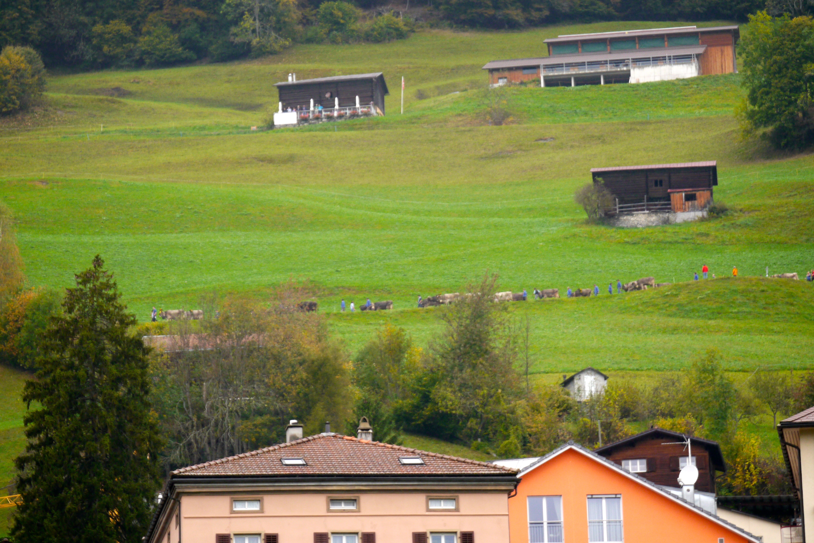 It was a bit of an adventure once we got off the train as the station is down the mountain from the town so John, Caesar and I loaded into the van and took the steep ride up. I was worried that we had missed the cows because we missed our first train…but the sound of bells echoing off the mountain as we got out of the van was our indication that we were right on time!