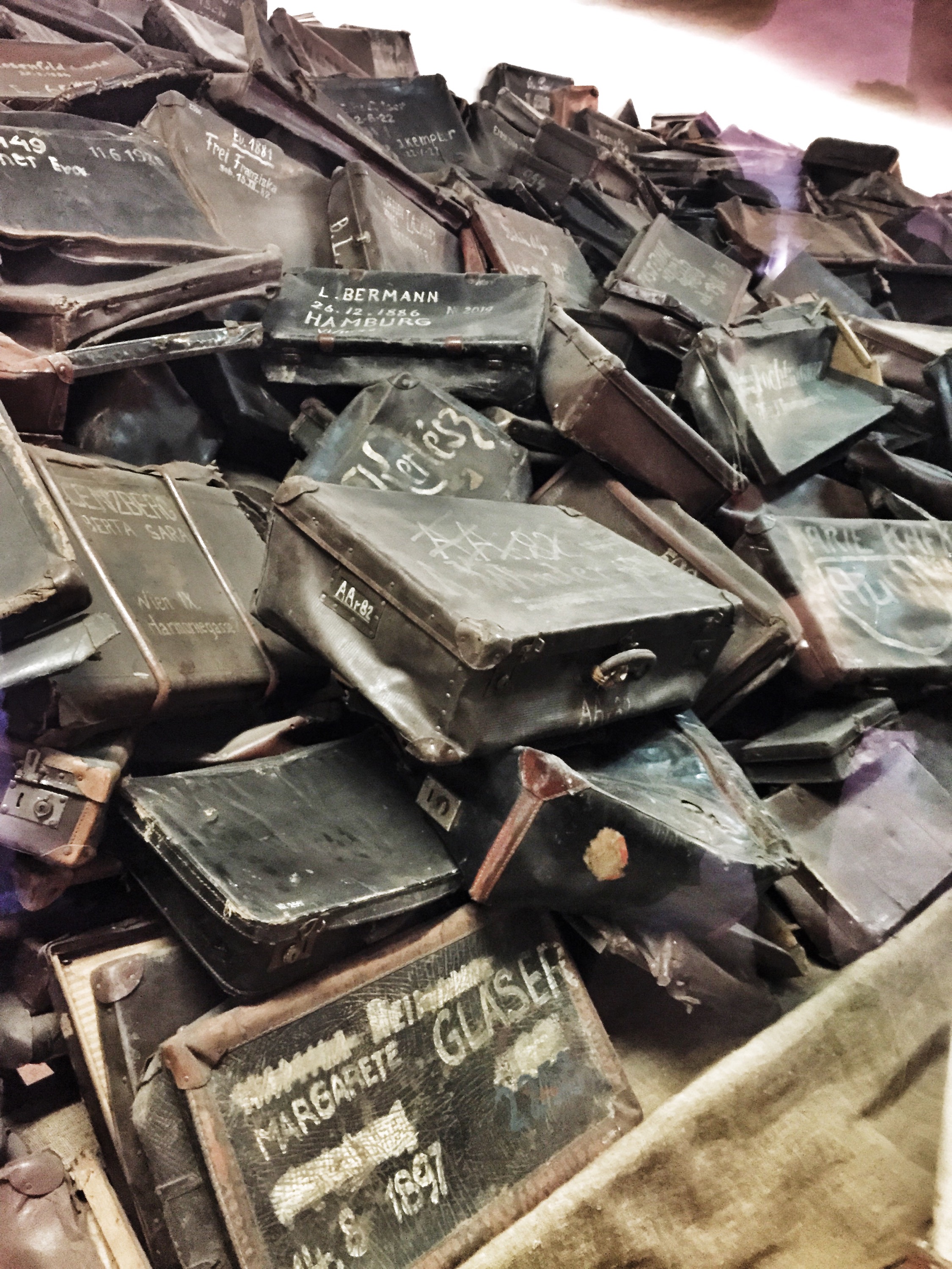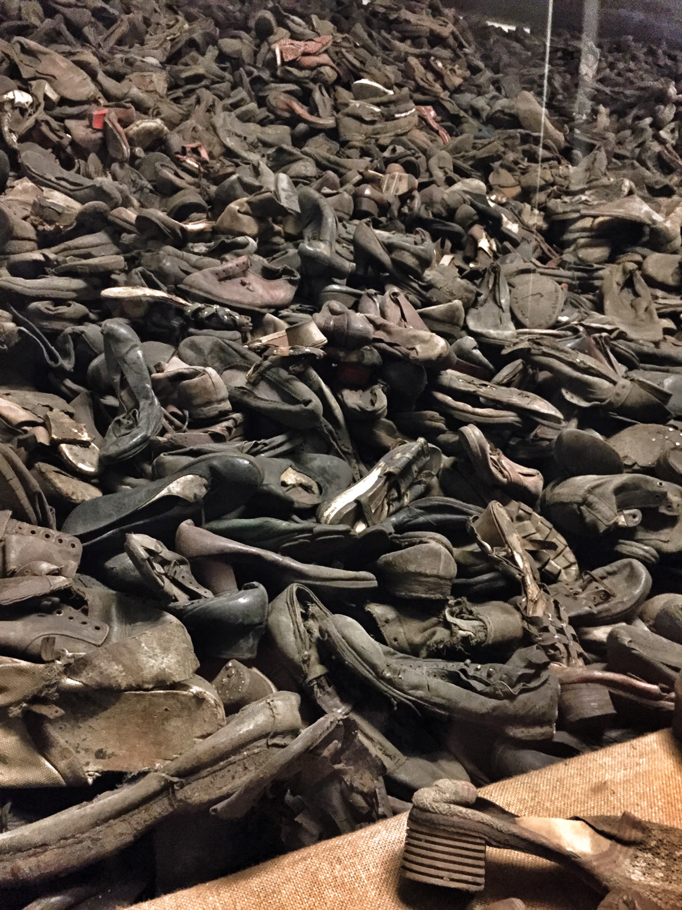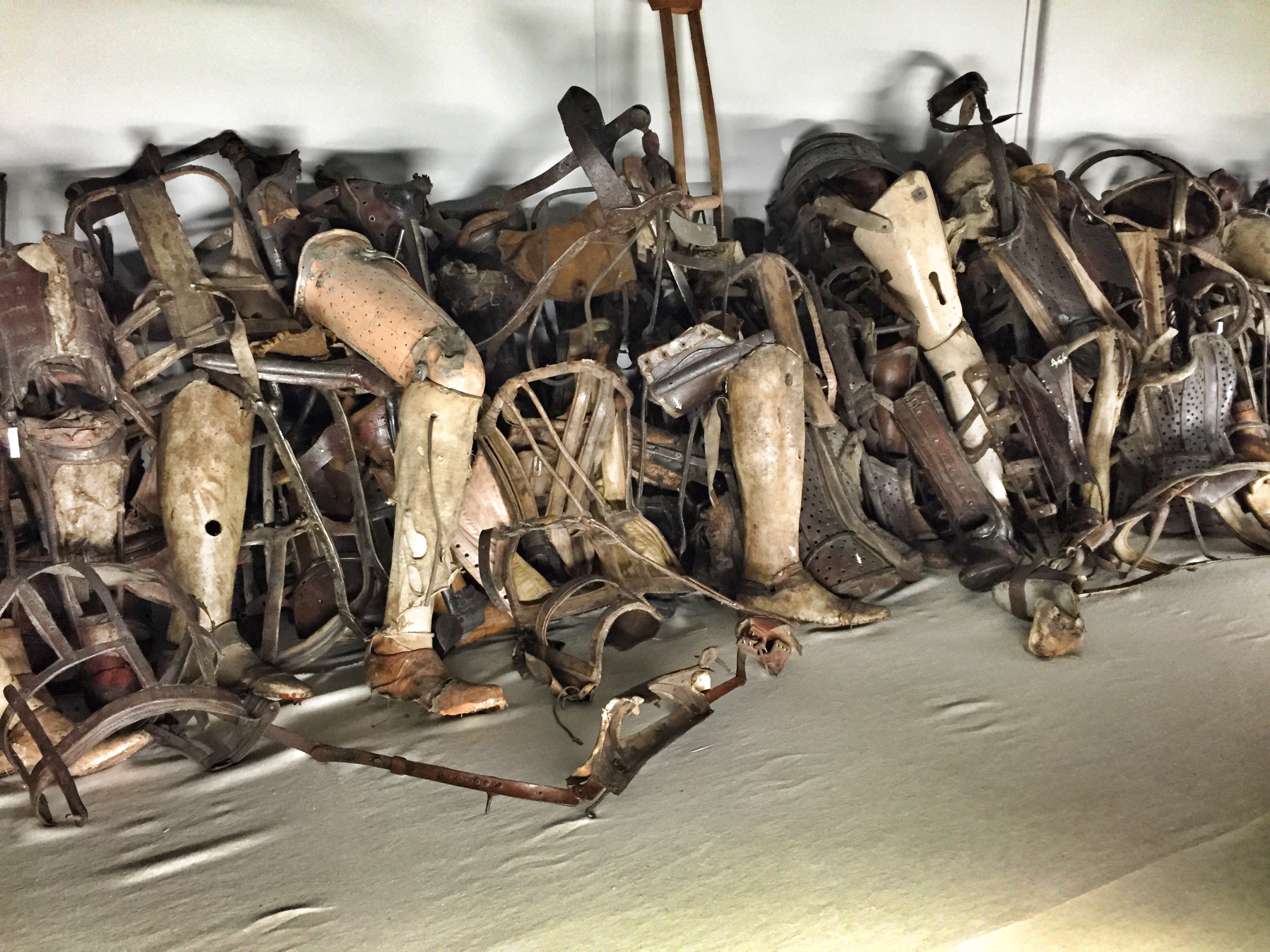 Then came the room of the victims shoes. They had been collected and traded for the camp prisoner wear. It was equally upsetting – made by worse by the baby shoes that were held in a separate case. I didn’t take pictures of those, although you could have. We then walked past the suitcases people packed, thinking they would be able to keep their belongings, and the eyeglasses they needed, and the prosthetics so many came in to the camp wearing.
