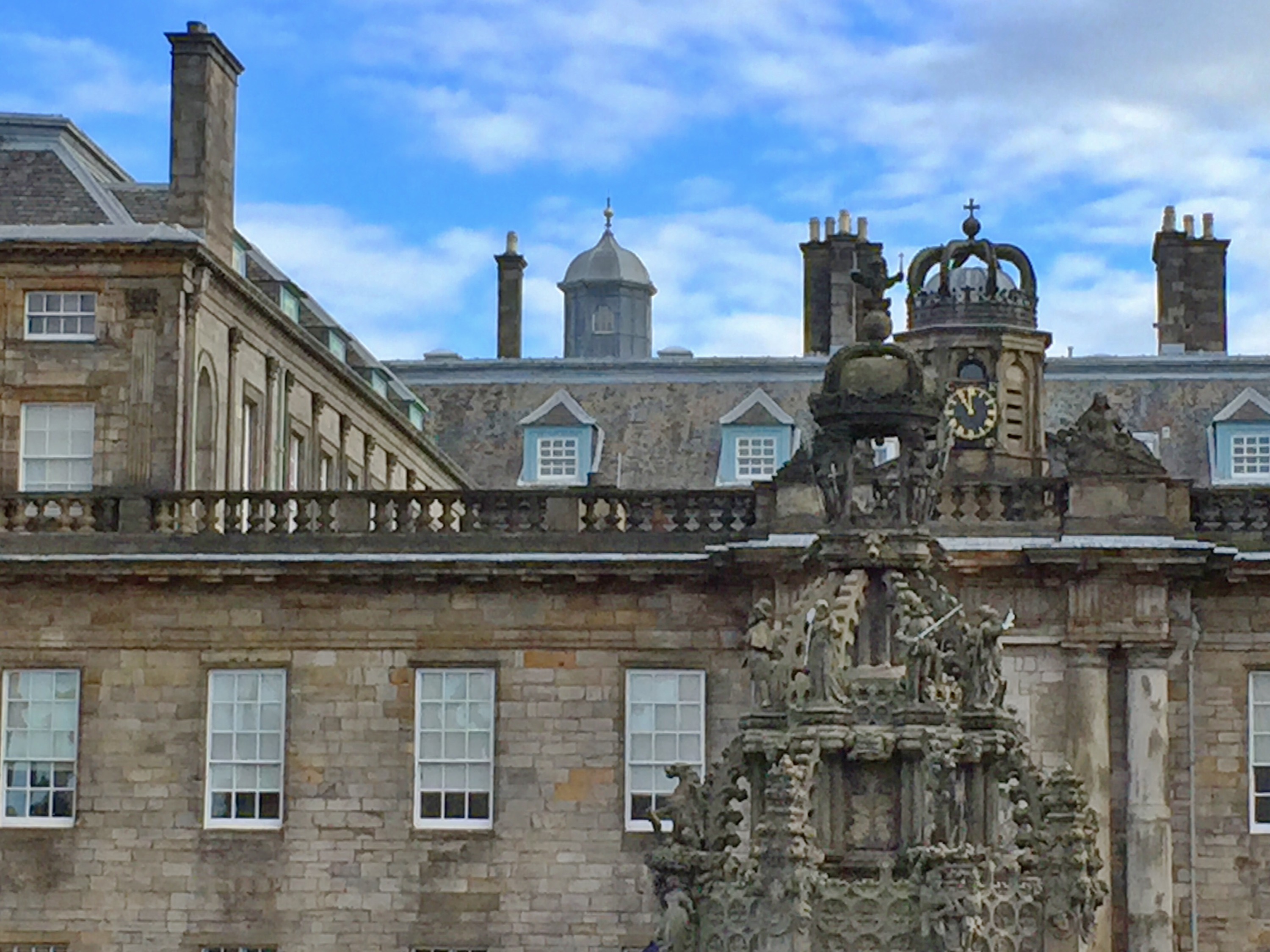 With our late start the next morning, and an obligatory stop at Starbucks pre-walk, we had to skip the first stop on our plan – walk up Carlton Hill – to work our way to the start of the Royal Mile and Holyrood Palace (Queen Elizabeth’s summer home). There are amazing views of Edinburgh pretty much all around you. (For those with the time, Arthur’s Seat on the outskirts offers both a challenging hike and apparently, pretty views. We opted out of climbing it.)