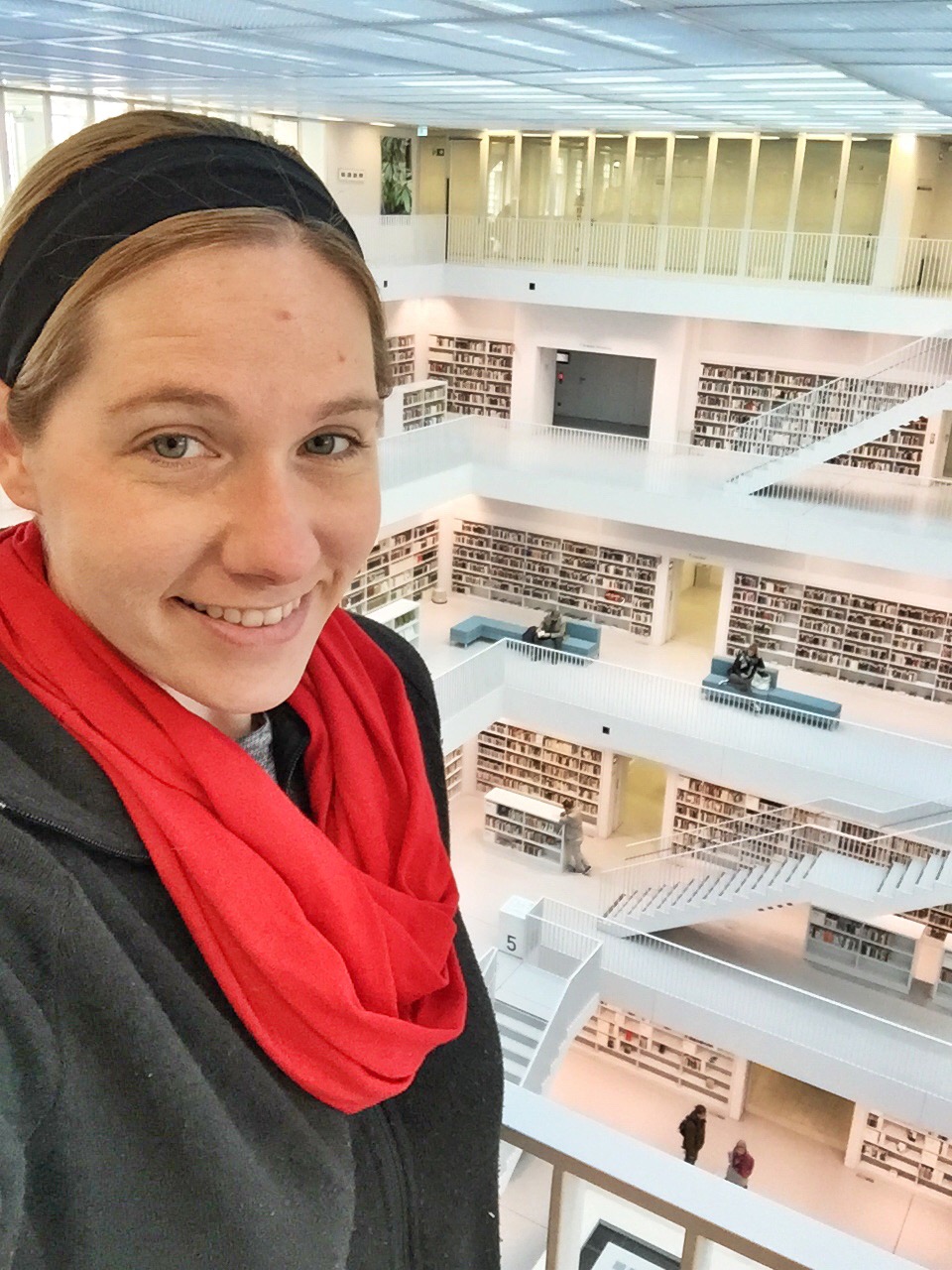 I have been telling John for a couple of months now how I wanted to go check out the Stuttgart City Library because it had made a couple of lists on being one of the world’s coolest libraries. There was really no excuse not to check it out – it’s a mere 9-minute U-bahn ride from our house, and I’ve been to the brand new mall right next to it on multiple occasions without going into the library. But, today, I sidetracked and saw first hand why it’s made the list of impressive libraries (see here and here and here).