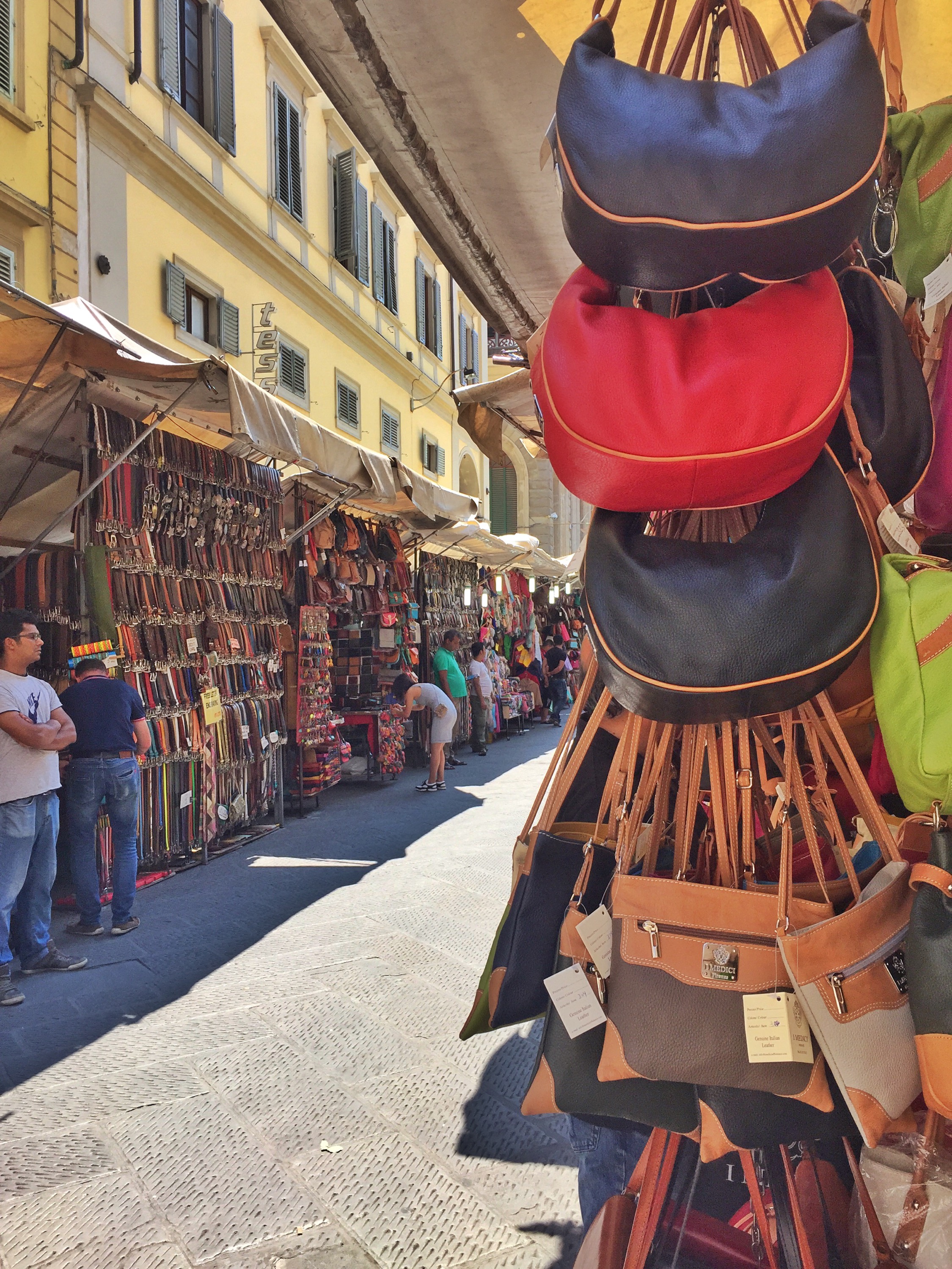 Needless to say, by the time we dropped out bags, we were ready to be out of the car and start exploring the city! Our hotel was in a great location, one block down from the famed San Lorenzo market…leather everywhere! It’s important to know going in that the prices are VERY negotiable – so never, never pay the ticket price. (More often then not, they will automatically drop the price. Keep talking them down, though, because they will go lower.) They can get a bit aggressive though, which is why I walked away from one guy – I don’t want to feel pressured when I’m about to buy something.