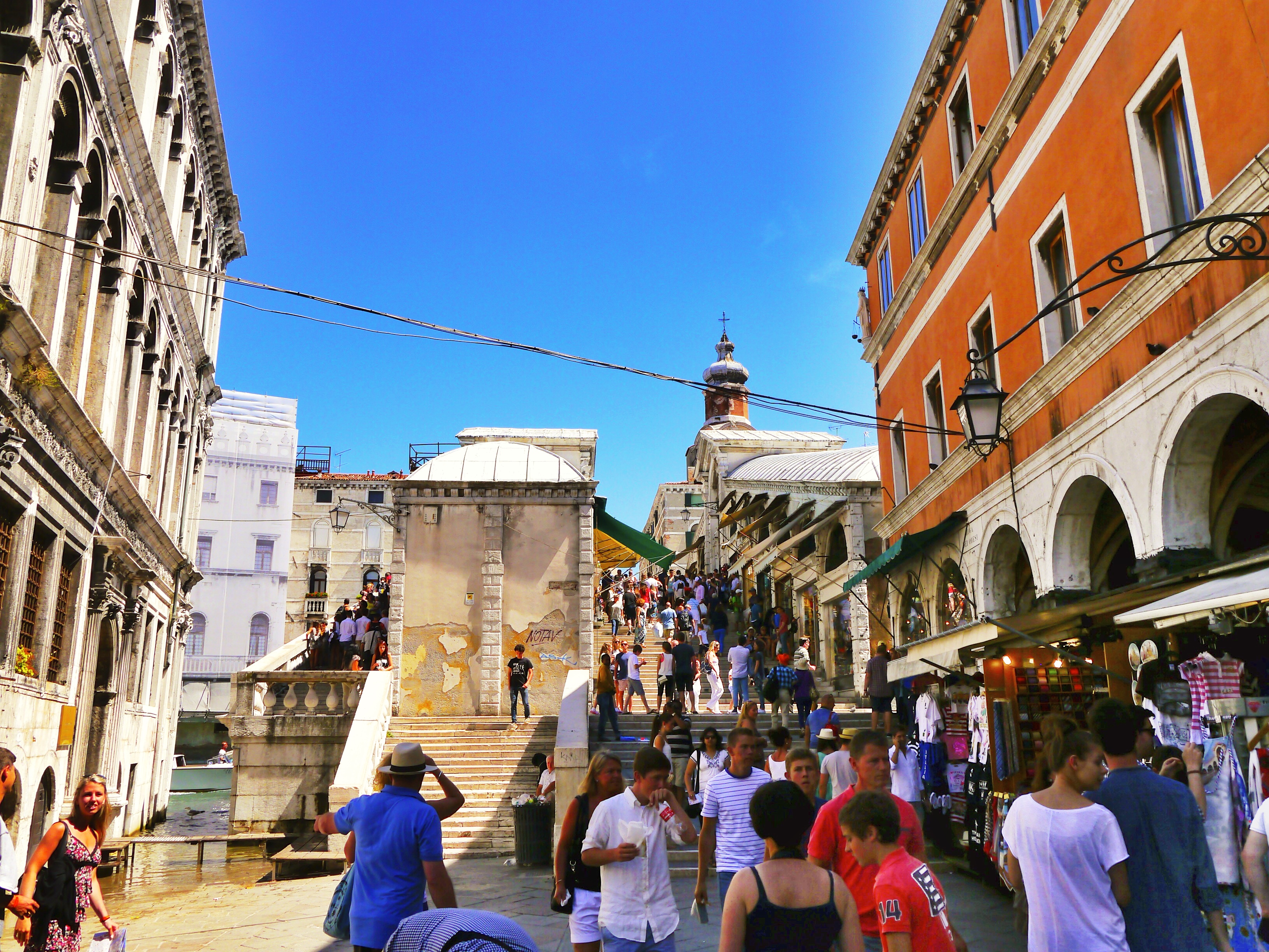 Once you cross over the Rialto Bridge the crowds will exponentially get larger – this is the touristy area. You’ll shuffle along with waves of people to the grand San Marco plaza, that overwhelms at first. You don’t know where to look!